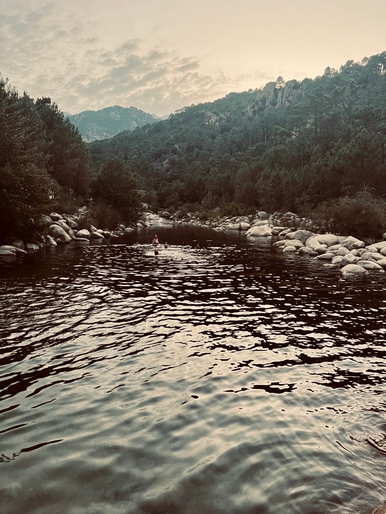 Da es an den Tagen am Meer sehr warm war, hat es uns dann erst einmal in die Berge gezogen. Direkt an einem gestauten Gebirgsfluss, so dass Baden auch hier möglich war. Der Campingplatz U Rosumarinu liegt zwar direkt an der Strasse, was aber nicht schlimm ist. Der Platz ist schmal aber auch hier war nach ein wenig Suche ein schöner Platz zu finden, an dem auch Platz für zwei Hängematten war.