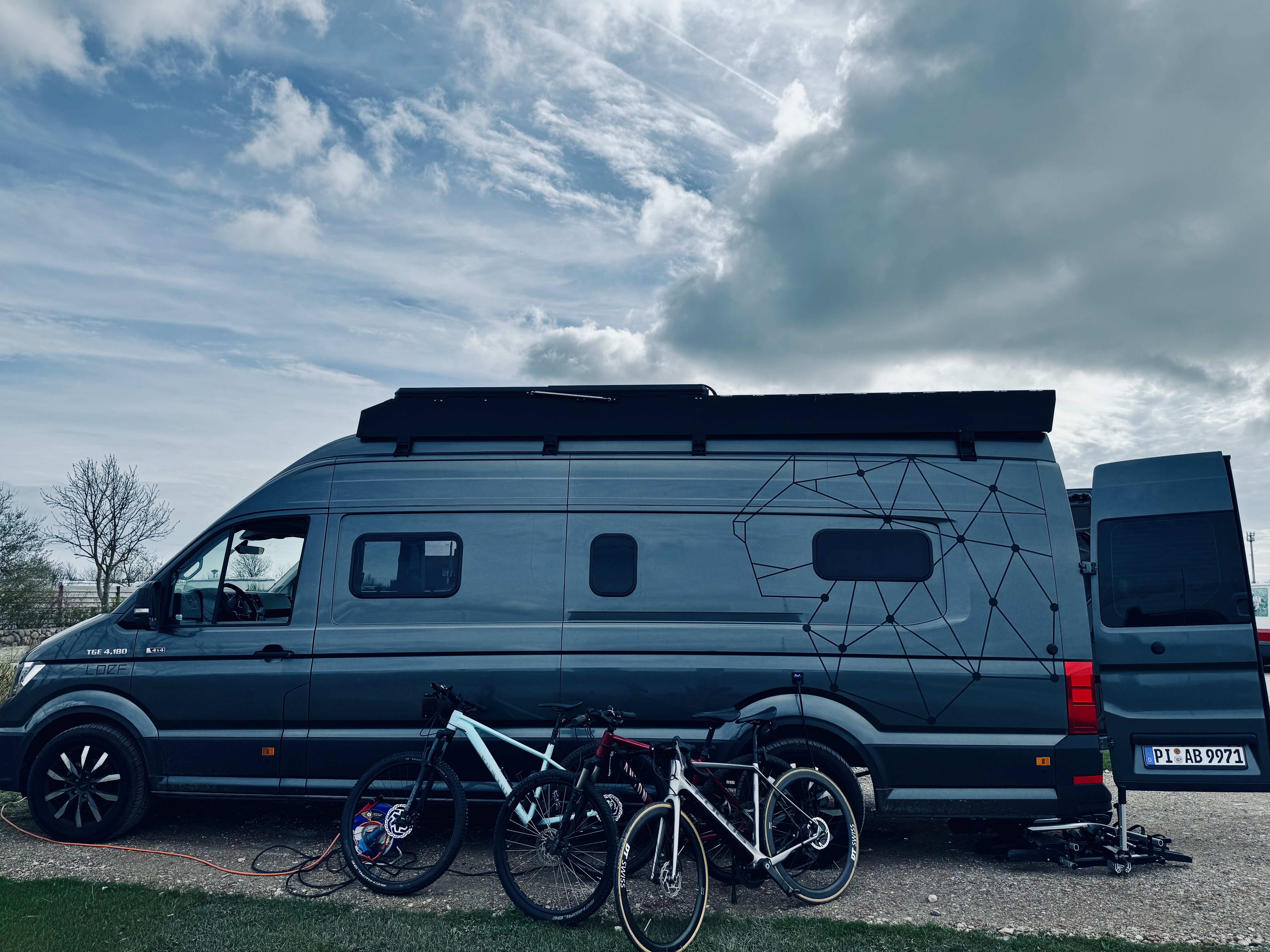 Eigentlich immer dabei haben wir mehrere Fahrräder – mal das kleine Brompton, die MTBs oder Rennräder. Der 4er Träger auf der Kupplung macht den LOEF zwar noch einen Stück länger, aber ich liebe es an den Orten an denen wir ankommen immer auch mobil per Rad zu sein.